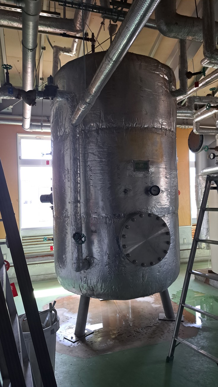 地震の影響で傾いていた特別養護老人ホームアイリスの貯湯タンクが