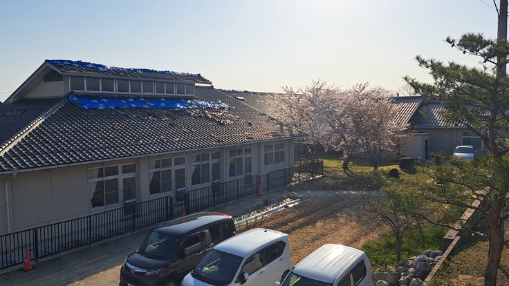被災した当初と変わらない様子、季節だけ流れ桜が誇らしげに咲いています