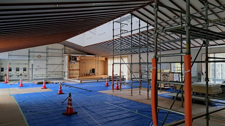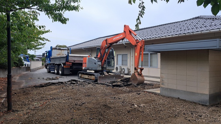 アスファルト舗装の修繕のため大きな重機も導入され大規模に修繕されました