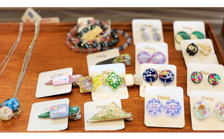 現在、さいたま市大宮区にあるコミュニティスペース&まちの保健室HumanBouquetでも販売させていただいているハート&アートダイアリーに通所する利用者さんが作った素敵なアクセサリーです💖
