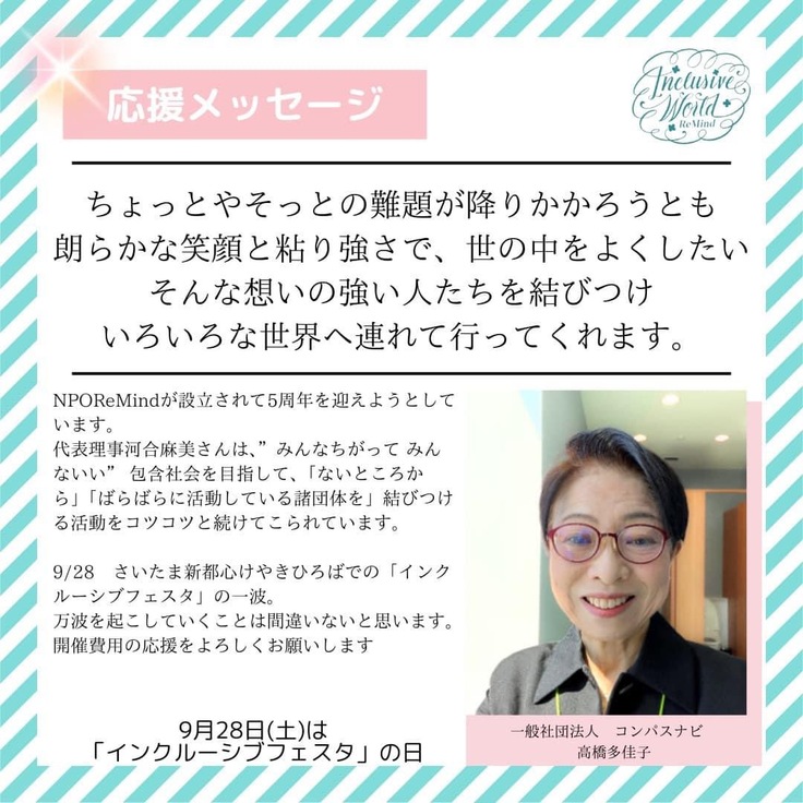 このインクルーシブフェスタを通して、一歩でも誰も取り残さないインクルーシブ社会が広がっていきますように…