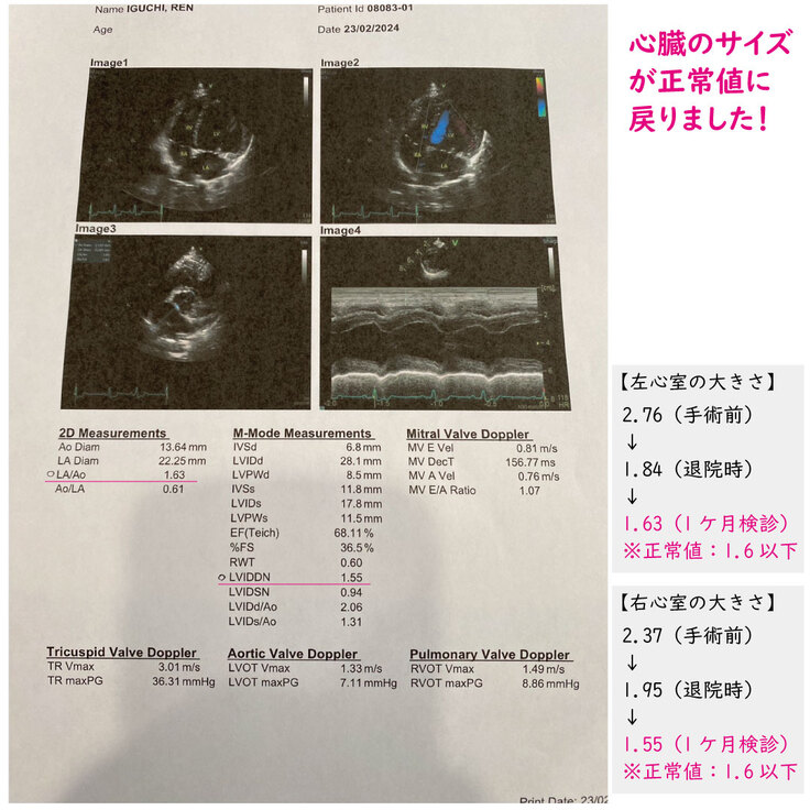そして、心臓のサイズも正常値に戻りました!