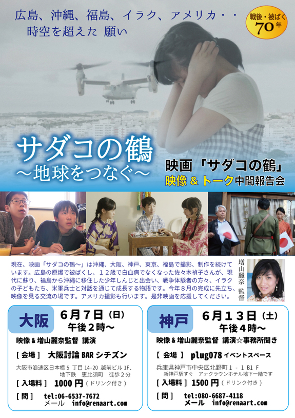 映画「サダコの鶴〜地球をつなぐ〜」の撮りためた映像を紹介しながら、進捗状況を報告し、映画の応援団を集めます!