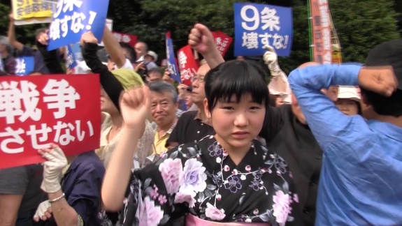 (写真/サダコとしんじは、国会前で行われた戦争法制のデモに参加した)