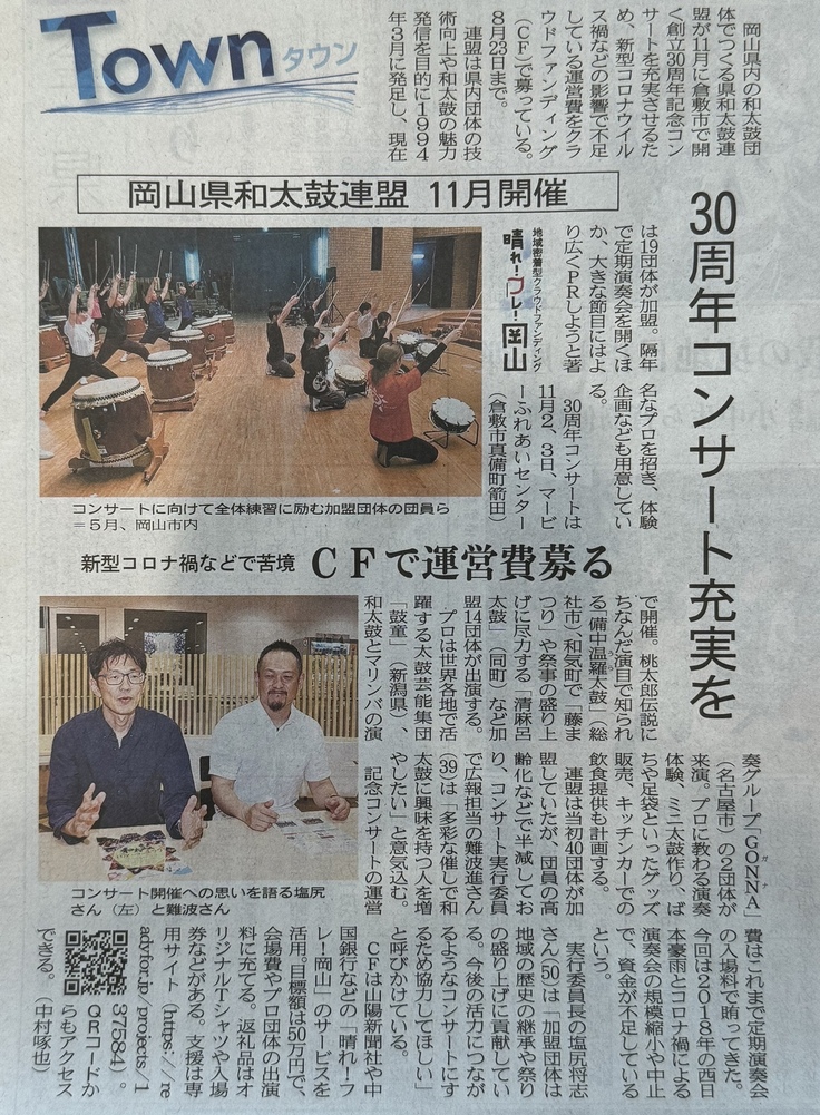 岡山県の地元紙である、山陽新聞さんに今回の30周年記念コンサートの取材をしていただきました。