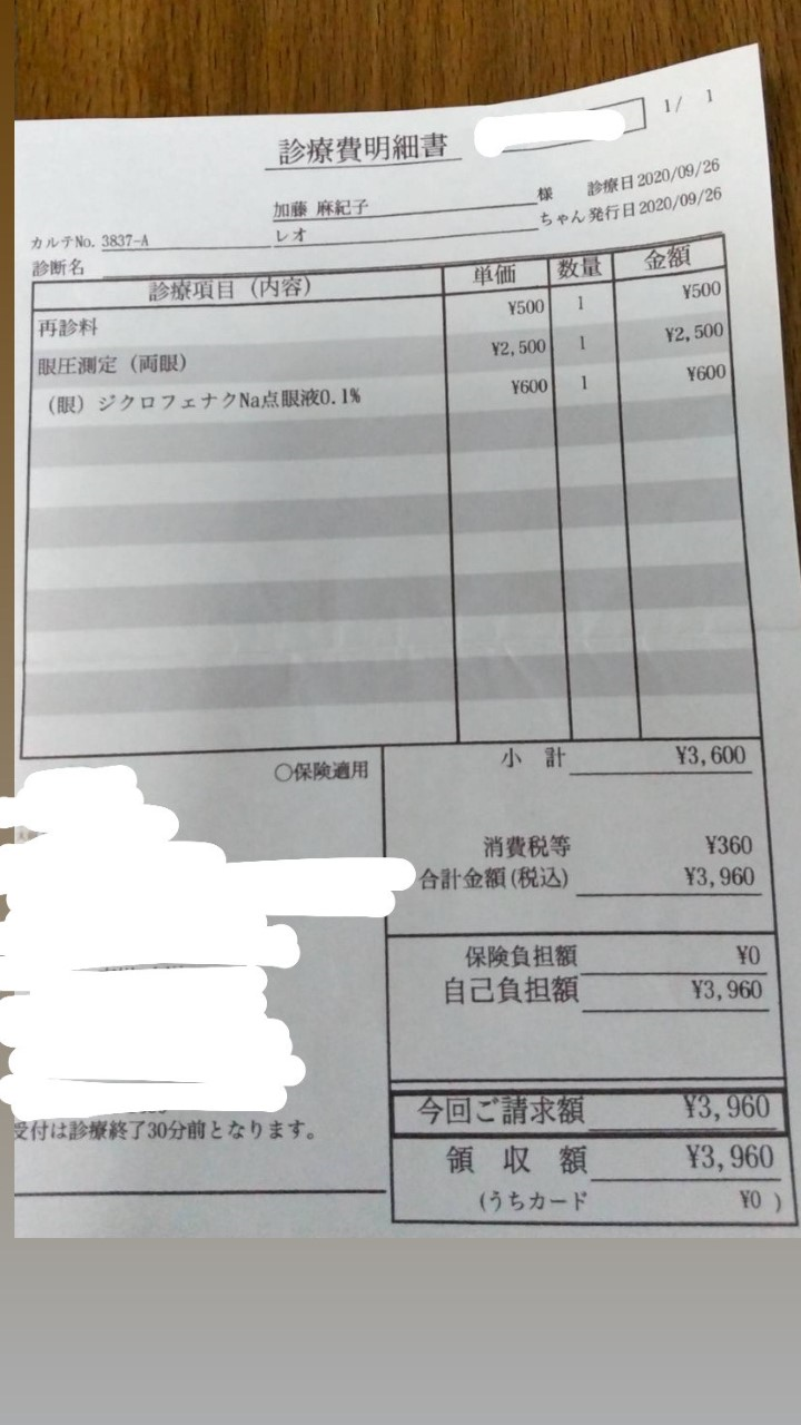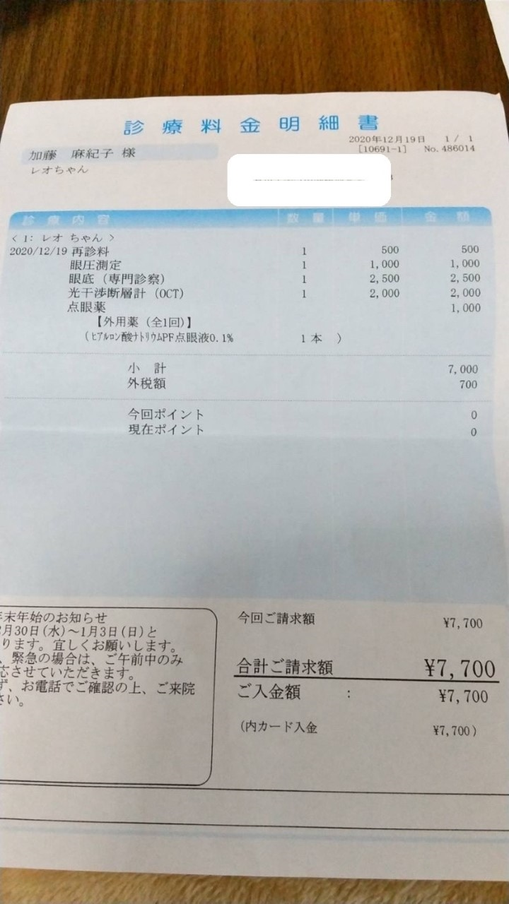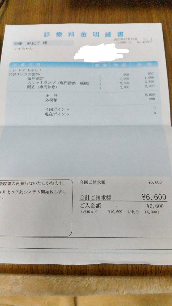 レオは目の病気のぶどう膜炎から発見された為、眼科の方でも通院費、検査代等がかかり