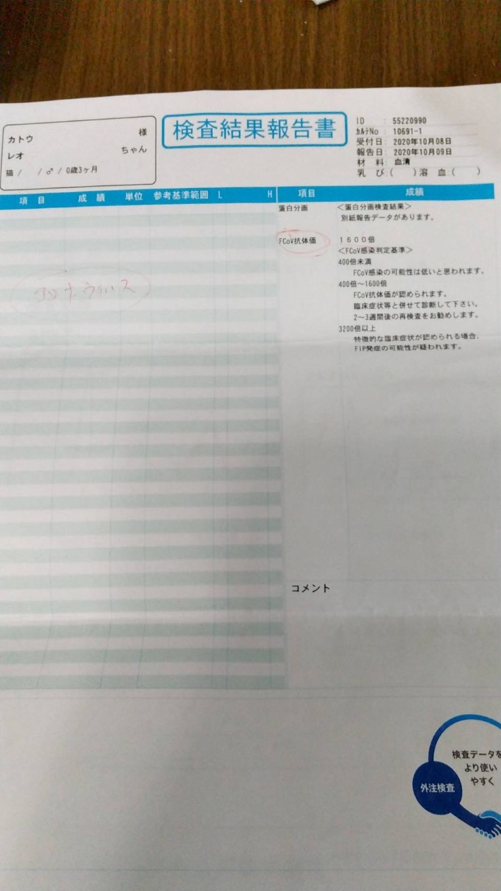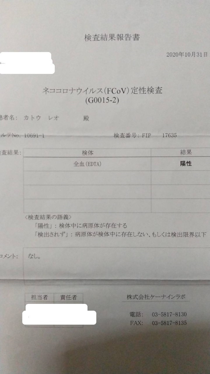 皆様のお力を少しでもお借りして投薬を中断することなく84日間続けFIP寛解を実現し