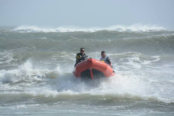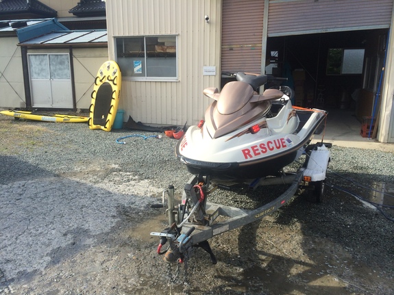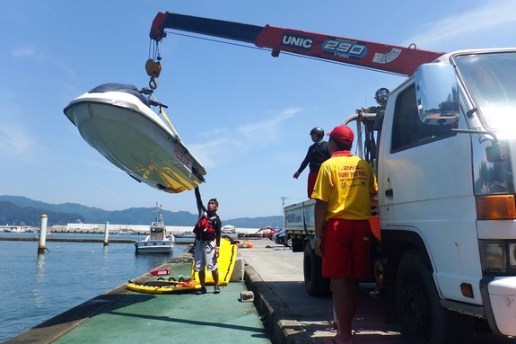 中古水上オートバイを改造した水難救助艇でのパトロール。