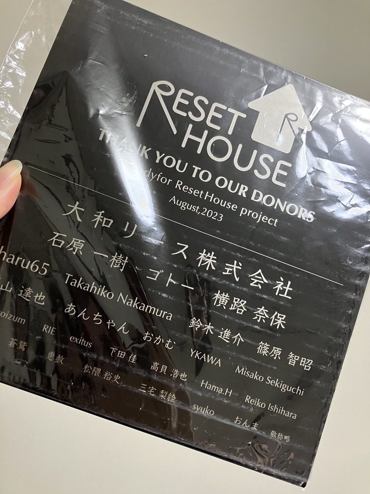 みなさまの名前を記載したプレートはこのような形に仕上がり、リセットハウス玄関に飾っています。