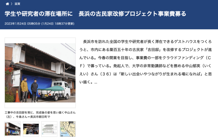 今週はじめには、中日新聞(びわこ版)にもこのプロジェクトについて記事を掲載いただきました。