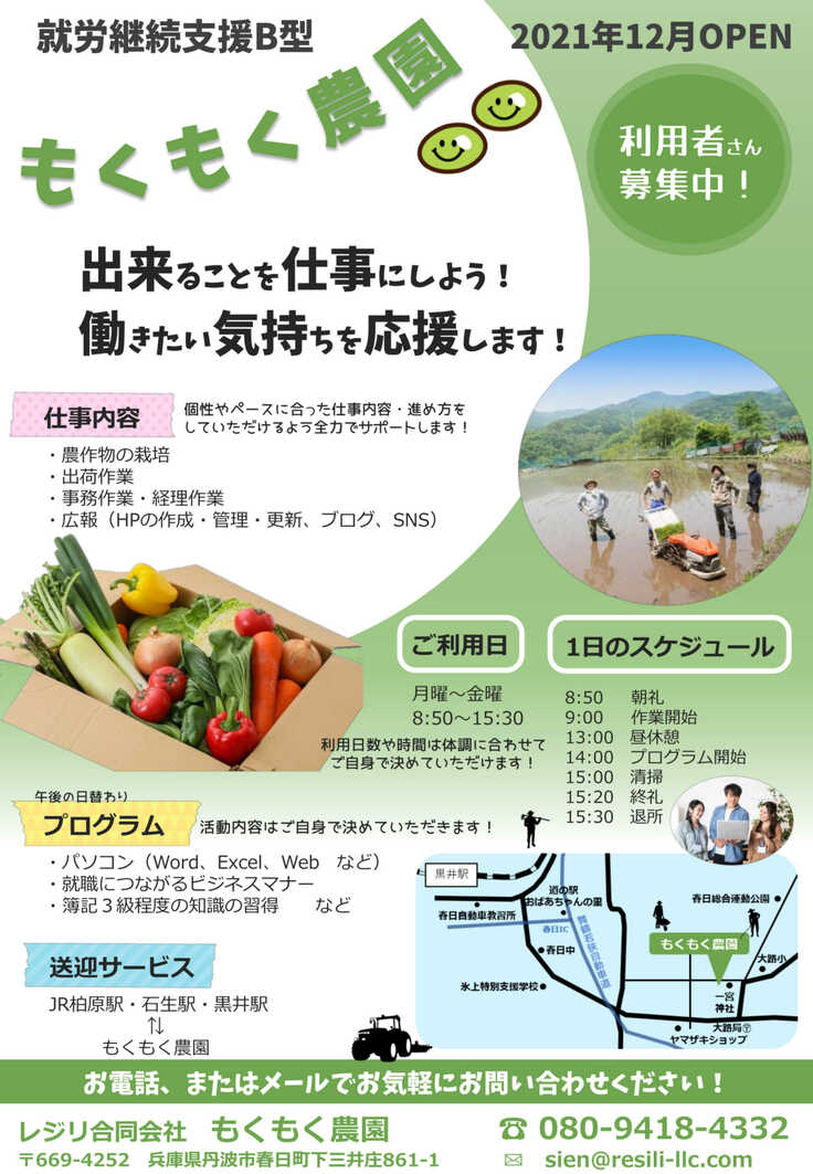 グループホームのチラシは、B型事業所と同じ建物の分はまだないのですが、同じ丹波市内の別の場所にも開設していて、そちらのチラシは後日載せたいと思います。