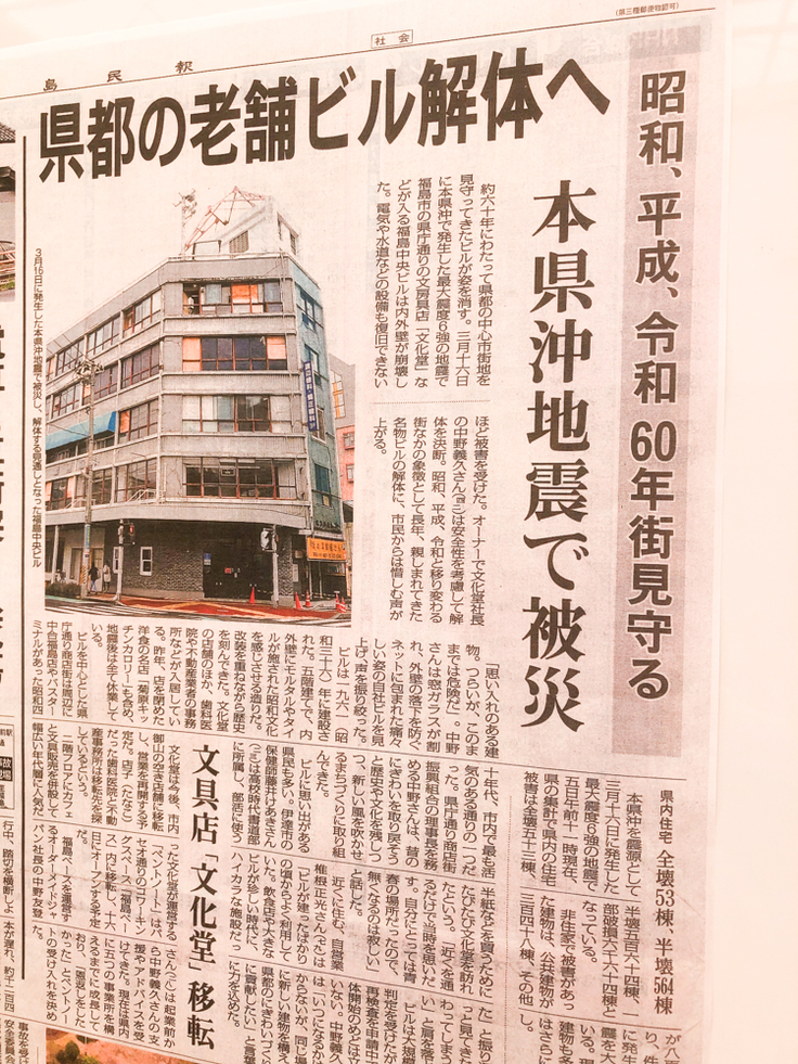 地震から1か月半の5月1日。文化堂とペントノートは、なんとか無事に福島市御山の新天地でオープンすることができました。