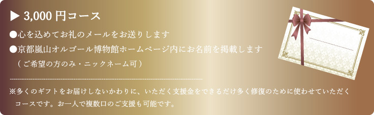 ※今回のプロジェクトのお振込み先は「京都嵐山オルゴール博物館」を運営している「株式会社翔屋」名義になります。