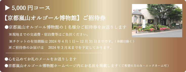 ●京都嵐山オルゴール博物館ご招待券(1名様)