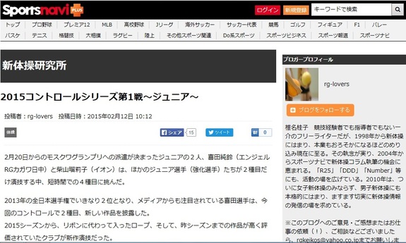 「ジムラブ」「新体操研究所」「Yahoo!ニュース個人」などによる情報発信。