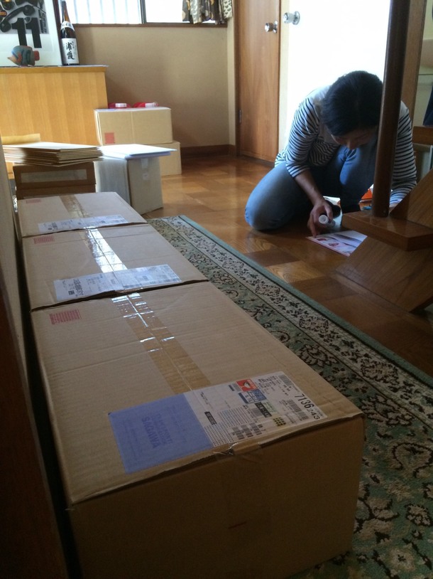 ※今日の写真は、どかんと届いた500冊! 発送作業に追われる私の妹も写り込んでおります(笑)