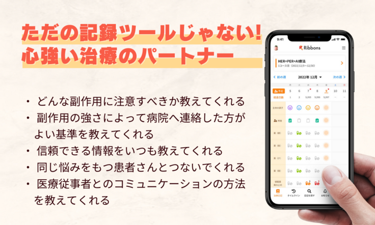 株式会社Ribbons Baseが運営するがん治療日記シェアアプリ「ribbons」の、開発・運営に100万円利用します。