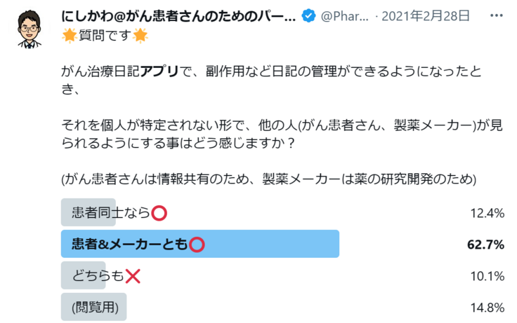 - 「患者-医療者間」だけでなく「患者-患者間」で共有できたら安心に繋がるかもしれない