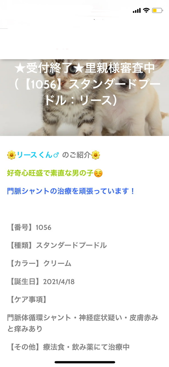 今回クラウドファンディングにてリース君の命を守る一心で立ち上げさせていただきました。
