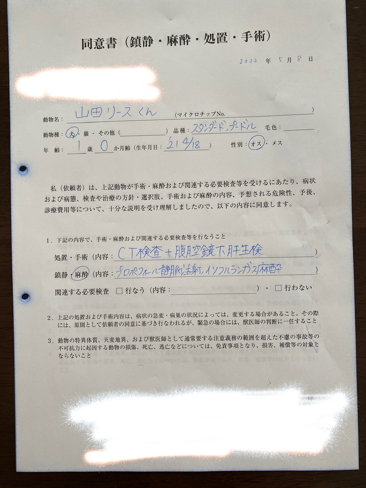 リース君(スタンダードプードル•1歳)の門脈体循環シャント及び神経症、皮膚炎に対する手術費用と治療費に使用させていただきます。