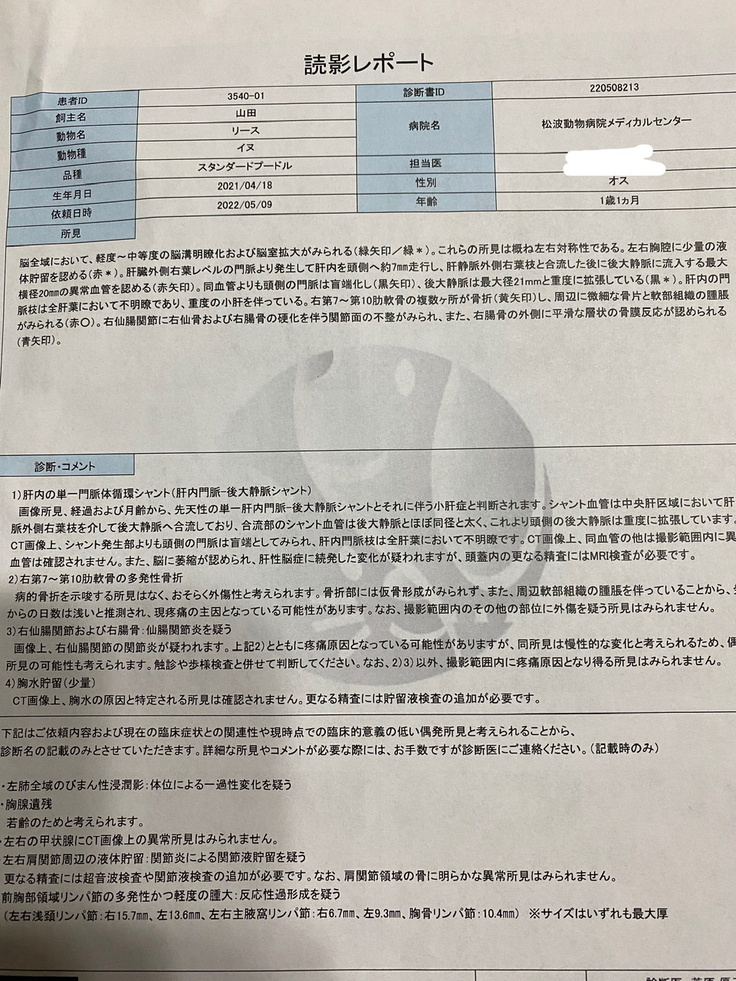 門脈体循環シャントを抱えている1歳のスタンダードプードルの「リース君」と出会いました。