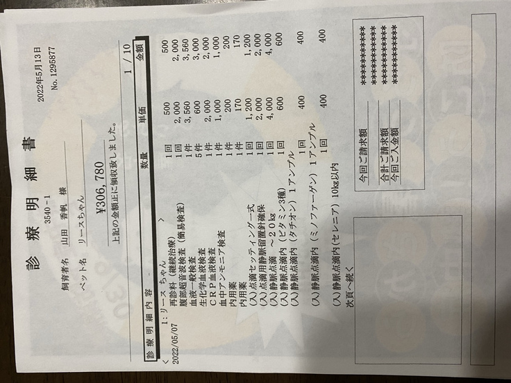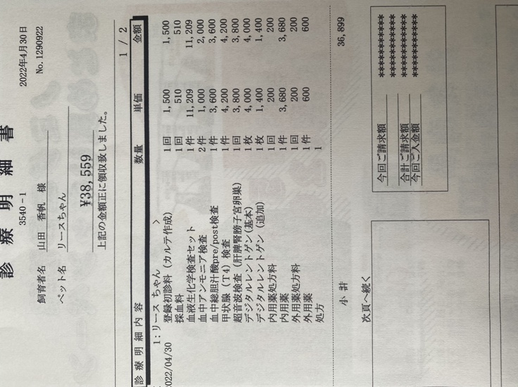 *抜糸、血液検査、薬費等...31390円
