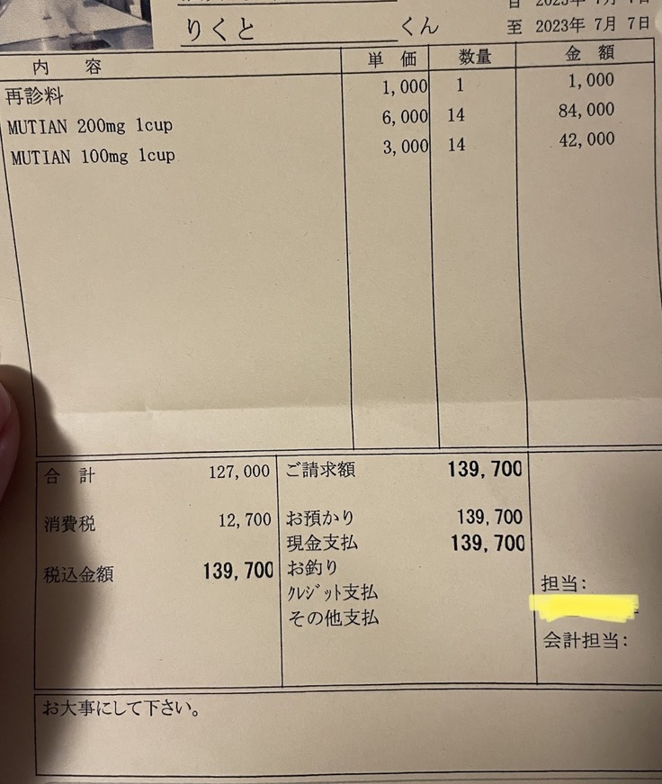 お薬が二週間分でこの価格(´;ω;`)1回の診察で初の10万越えで驚き。。。