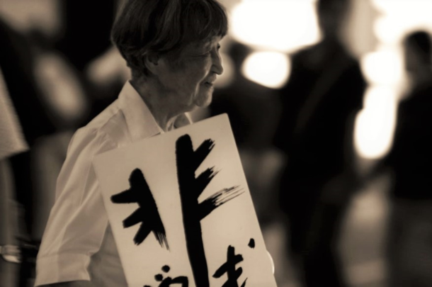2003年3月に始まった新宿駅西口広場での反戦平和・脱原発のスタンディング(立つことで意思表示)では、90才まで毎週土曜日、静かに立ちつづけていました。