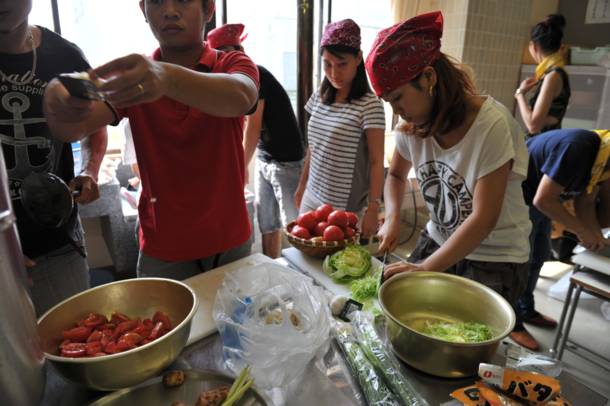 ベトナムの人たちのチーム力はすごいです。 料理の材料が足りなくなっても、創意工夫で乗り越えます。
