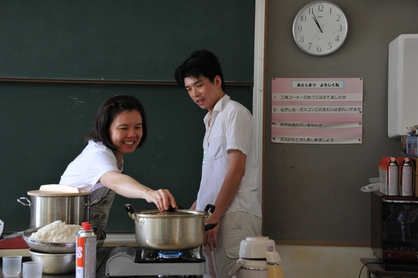 ニコラちゃんは学校の先生、興味のある学生にはボランティアで日本語も