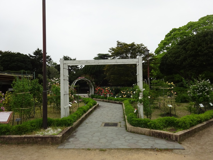その傍らに「殿堂入りのバラ」が集められている。3年に一度開かれる「世界バラ会議」が選定したもので、各国が推挙した品種を持ち寄り、投票で決定される。バラの品種は多く、約3万とも5万種とも言われており、その中で品種として優れているのはもちろん、世界中のバラ園に植えられ愛されているものが選ばれる。この「殿堂入り」のバラが全て、元気に育っているのが見られるコーナーがある。