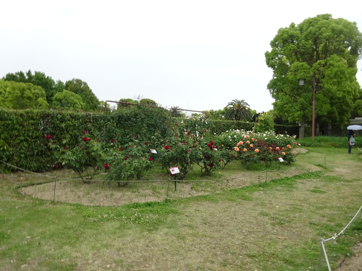 須磨離宮公園では、整然と区割りで構成された噴水公園が迎えてくれる。すべてにバラが植えられ、皇室の方々や世界中の著名人の名を冠したバラが集められている。周囲を自然の山林で縁取られたスケールの大きい景観は他では見られない。