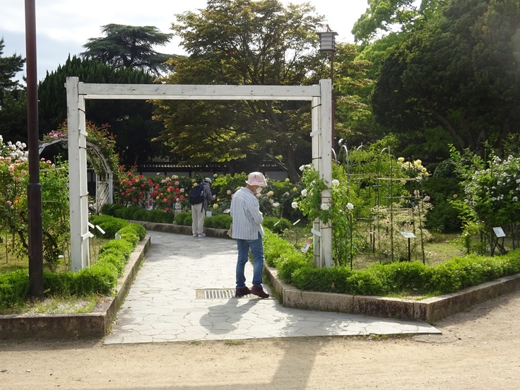 須磨離宮公園のバラ園は、皇室や王侯貴族の名を冠したバラが観賞できる噴水広場の「王侯貴族のバラ園」や、その西側の「バラの歴史と文化園」と「世界殿堂入りバラ園」があり、園のシンボルとなっています。