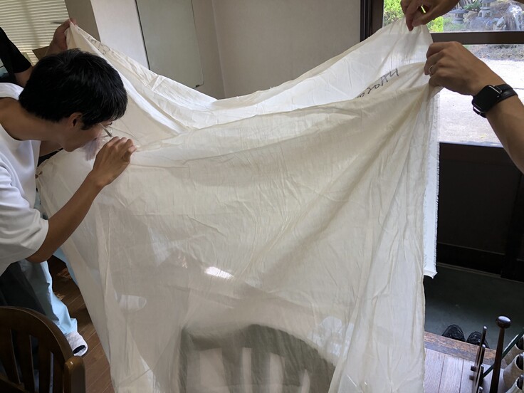 先日は、Rin Takashima吹き抜け上部の照明兼メイン装飾となる「布」を選びに、高島にある2つの繊維工場にお伺いしました。