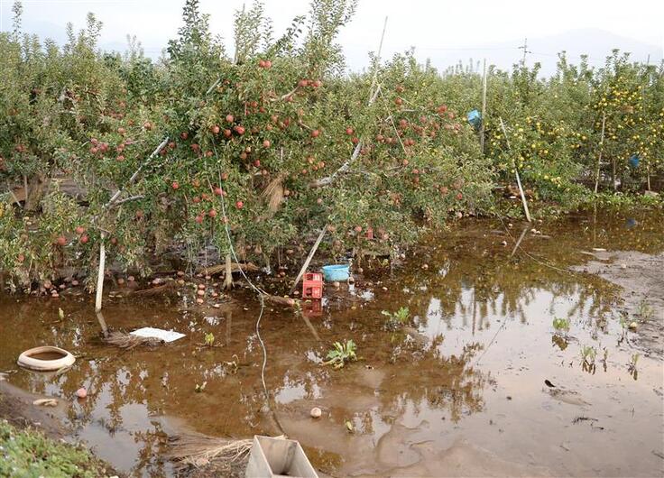 近年、寒暖差が少なくなることで色づきが悪くなる、強すぎる日差しで日焼けしてしまうといった現象が起きています。開花が早まると、その後の霜で花がダメージを受けるリスクも高まります。2019年の台風19号では千曲川が氾濫し、りんご産地も泥に浸かるという痛ましい災害もありました。