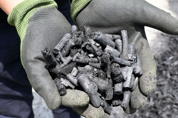 バイオ炭とは木や竹、もみ殻などの生物資源を炭にしたもの。
