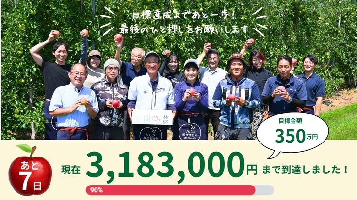 おかげさまで、目標金額350万円に対し、現時点で90%(金額:3,183,000円)に到達いたしました!