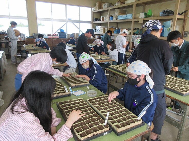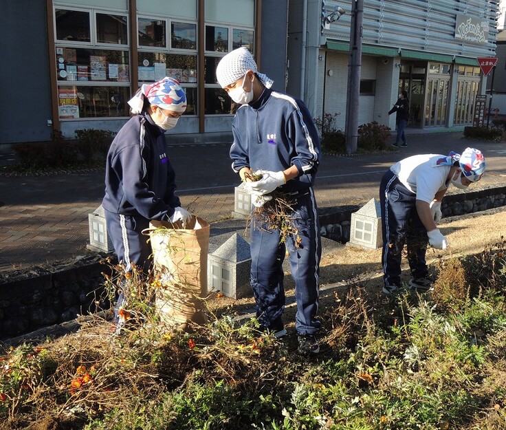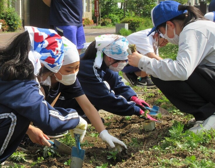 〇6月 並木の夏花壇を彩るための花いっぱい交流会。下伊那農業高校の皆さんといっしょに播種、並木の花壇に苗の定植作業を行います。