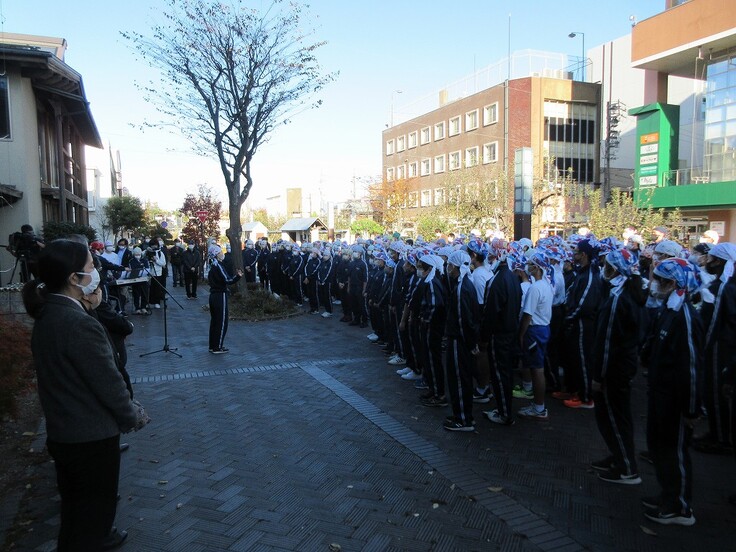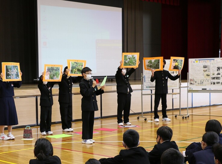 飯田東中学校は、りんご並木が縁で、豊橋市立青陵中学校とつながりがあります。りんご並木をつくる志に感銘し、青陵中学校では夏みかん並木がつくられました。毎年、りんごと夏みかんを贈り合っています。昨年度、2年生が青陵中学校を訪れ、57年ぶりの人的交流を行いました。