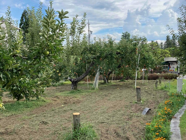 新しいプレートを設置するために、りんご並木のプレートを撤去しました!
