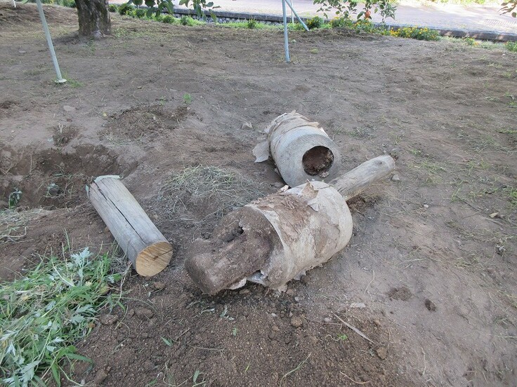 パワーがあり余っている生徒の手で、穴から抜かれた土台