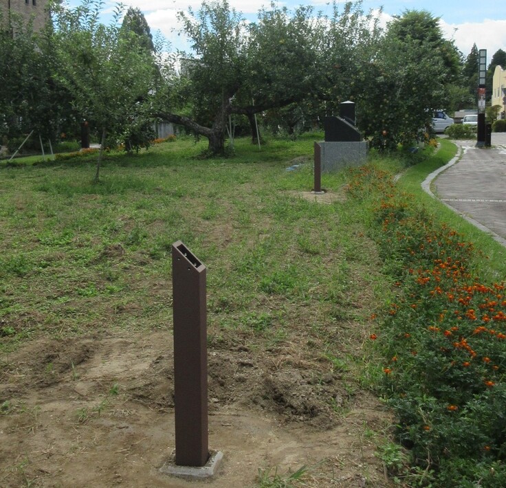 りんご並木には、新しいプレートを設置する土台と支柱が設置されました。