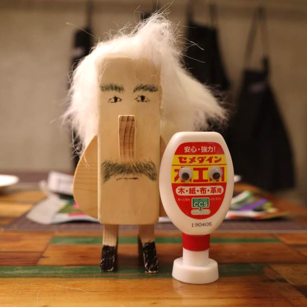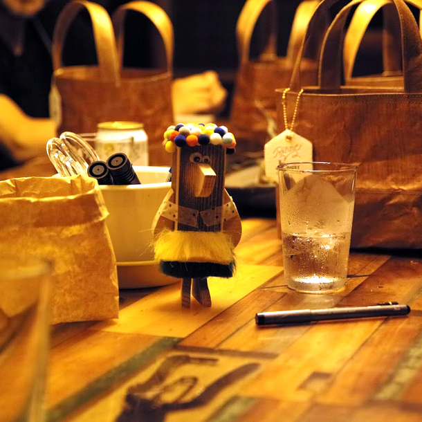 たくさんの道具に囲まれながらお酒を飲むこのデザインは