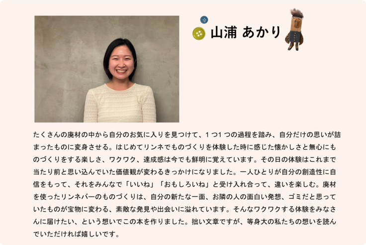 私たちの本を手に取ってくれた方々に、モノがあふれる社会の中で、消費だけでない、自分の創造力や感性で”生み出す”面白さを感じていただけたら嬉しいです。