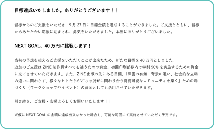 さらに多くのご支援をいただけた場合、学生には初回印刷部数内で学割50%オフにする予定です。