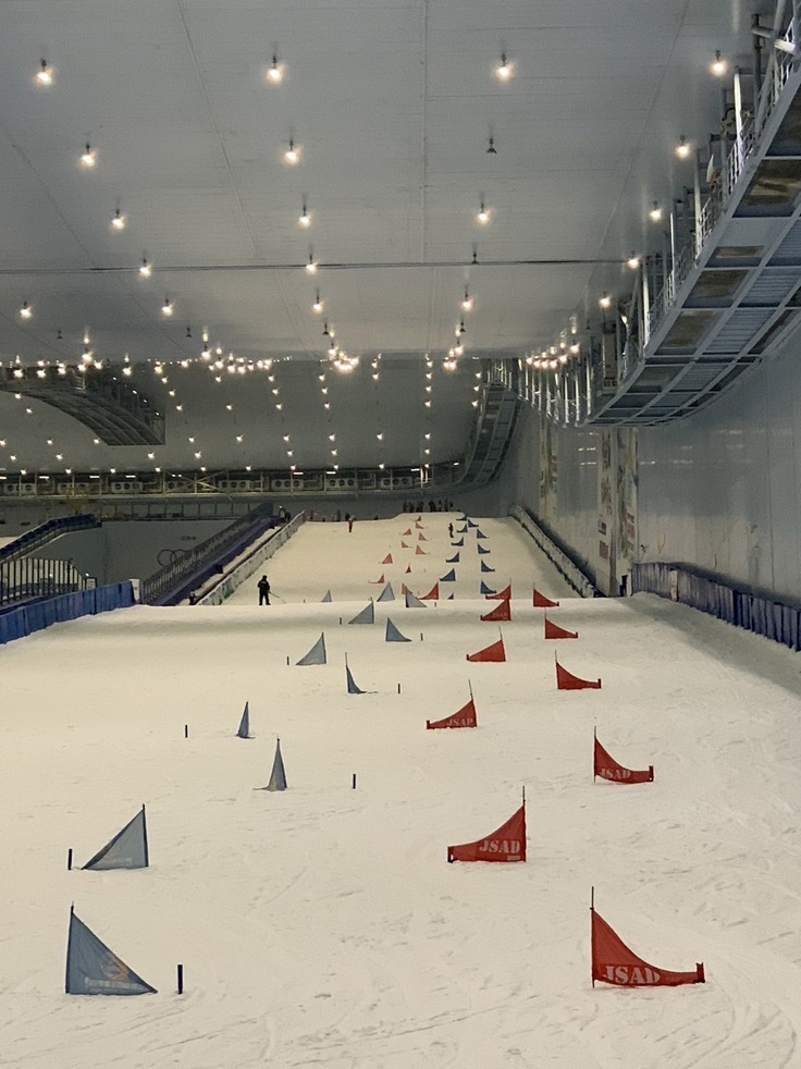 室内スキー場で雪上トレーニングに励んでおります。