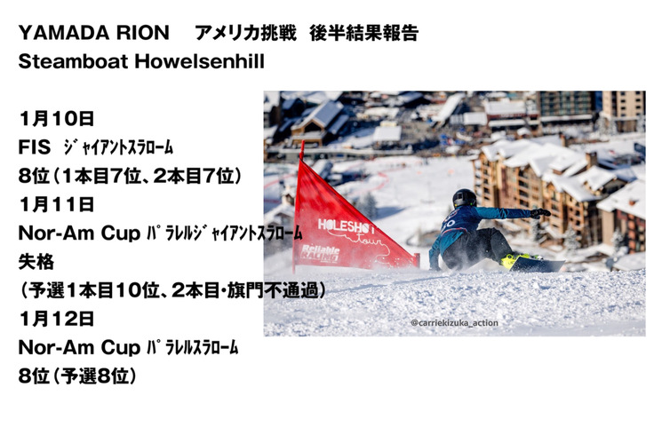 大会は、積雪不足により選手の安全を最優先に考慮し中止といたしました。今回は残念ながら開催できませんでしたが、福井県にて公認大会及びプロ戦を開催できることが確認できました。来シーズン再チャレンジしたいと思います。