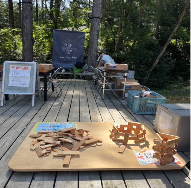 自社で製作したひのき玉プールやかまぼこ積み木等の木製玩具を携え、川崎や横浜、東京など都心部でのイベント参加は、数十回を超える。