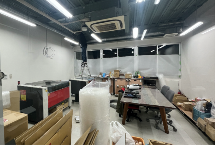熱で上部が歪んだレーザー機(左)を設置した、新たな製造の拠点