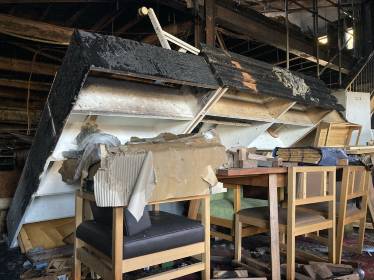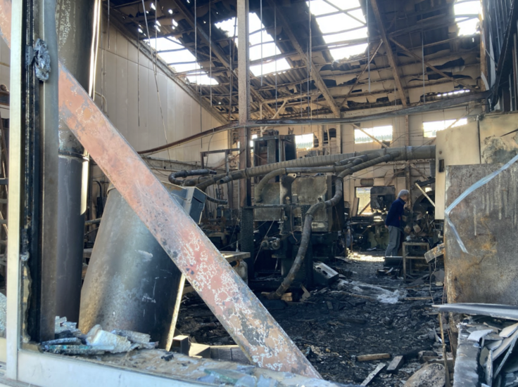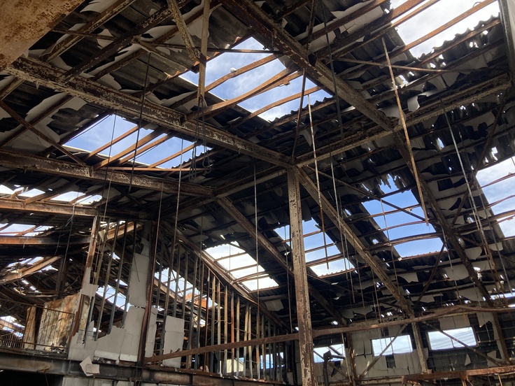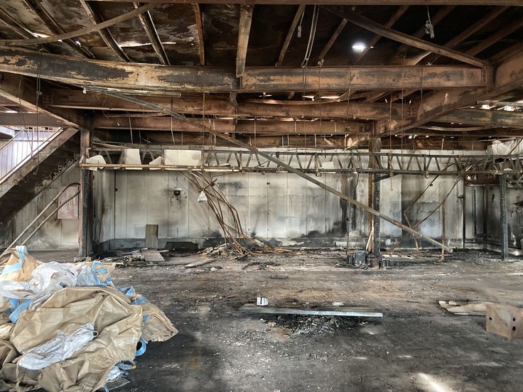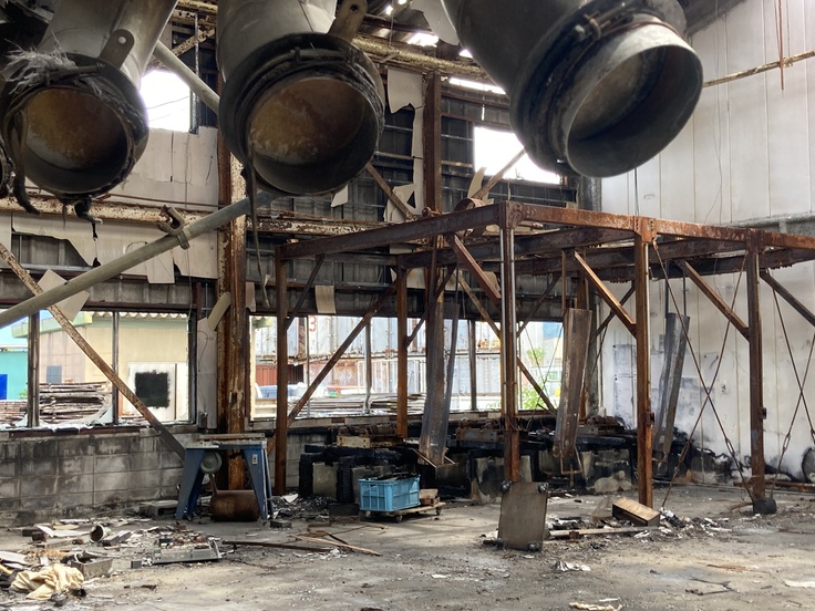 かろうじて焼け残った工場の屋根から差し込む光に、火災直後は胸が締め付けられました